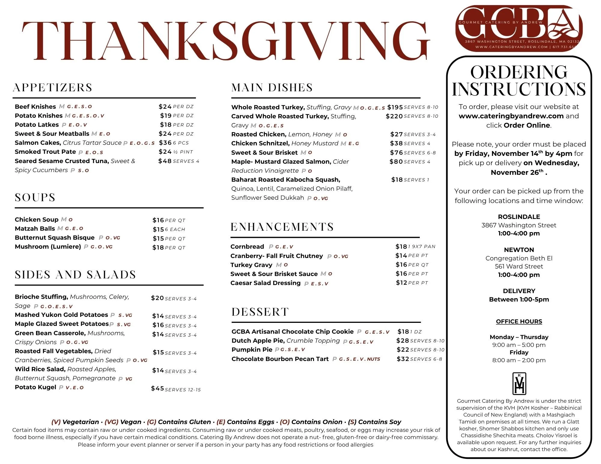 Orders for Thanksgiving must be placed by Friday, November 14th by 4pm for pickup or delivery on Wednesday, November 26th!